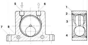 殼體兩端置有尼龍端蓋,用來定位鋼球,同時(shí)防止灰塵和水的進(jìn)入,因此可使本機(jī)工作于多塵潮濕的環(huán)境中。進(jìn)、出氣口均有標(biāo)準(zhǔn)管螺紋,使排氣可由管路引出,確保排氣無障。為適應(yīng)不同安裝位置,本機(jī)上有4個(gè)安裝孔:兩個(gè)水平,兩個(gè)垂直。