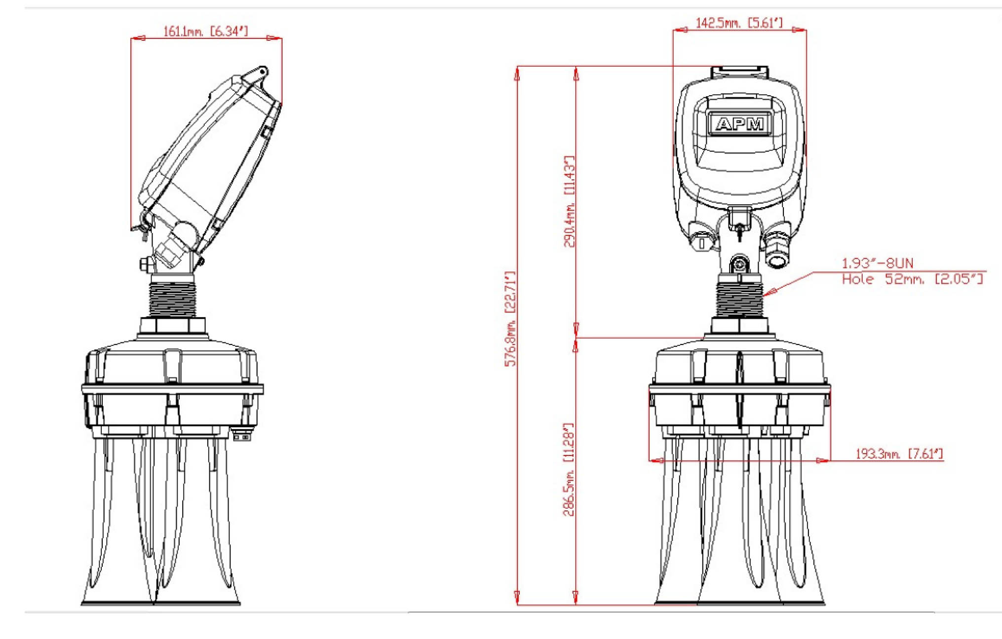 正確的安裝位置為:離罐壁距離為罐直徑1/6處,最小距離為500mm。 不可安裝在入料口上方。 盡可能避免罐內(nèi)障礙物,如開關(guān),儀表,加熱線圈,真空環(huán)和擋板等等 喇叭口進(jìn)入料倉不小于10mm 必須垂直安裝于料倉 |