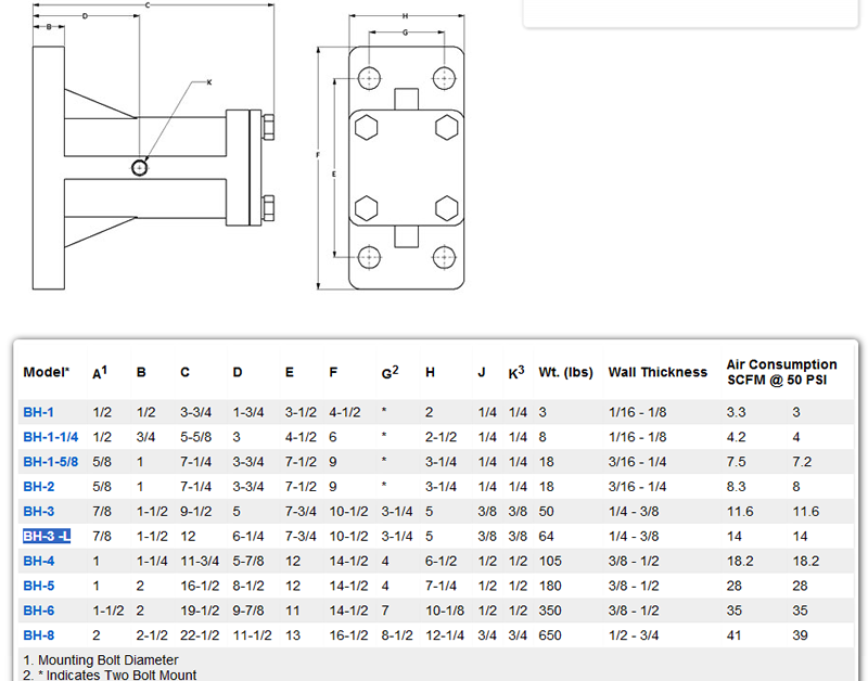 NAVCO vibrators型號(hào)包括:BH-1,BH-1-1/4,BH-1-5/8,BH-2,BH-3,BH-3 -L,BH-4,BH-5,BH-6,BH-8,氣動(dòng)振動(dòng)器獨(dú)特的navco BIN映射方法涉及的儲(chǔ)存容器和其預(yù)期的散裝材料的詳細(xì)的評(píng)價(jià)。建議的基礎(chǔ)上的各種因素,包括體積密度,粒度,水分,溫度,容器的大小和形狀。navco氣動(dòng)活塞振動(dòng)器的大小及其影響區(qū)域的應(yīng)用是確定的。振動(dòng)器位于料倉(cāng)或漏斗,重疊區(qū)域影響;振子在一個(gè)序列中,提供最優(yōu)流模式和最小公用工程消耗操作。